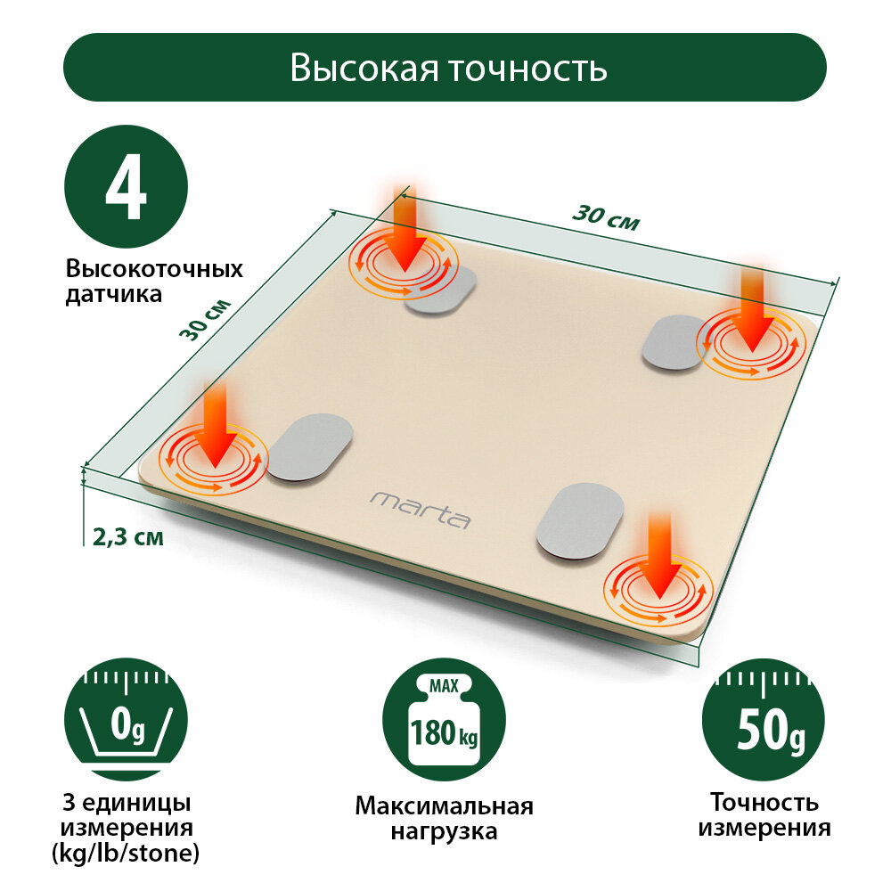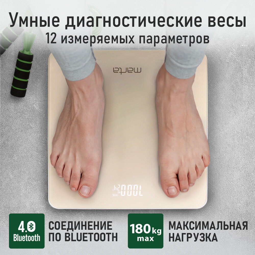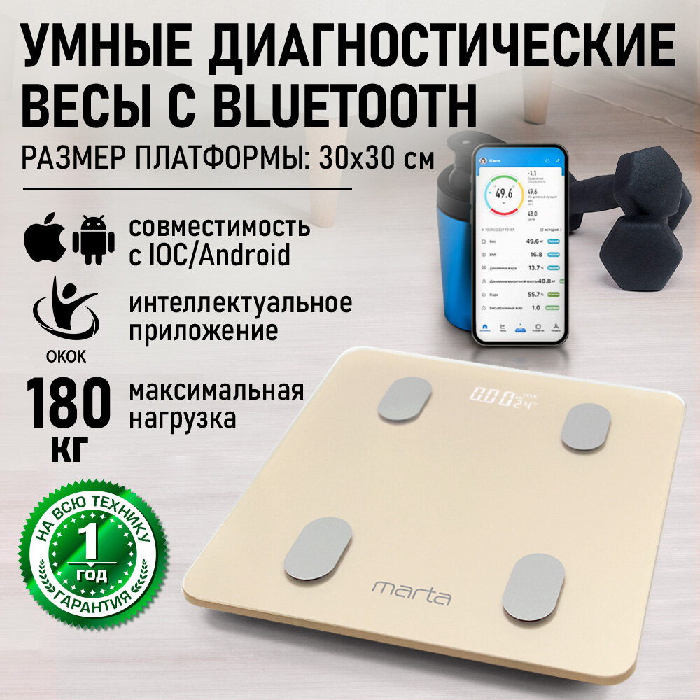 Весы напольные умные MARTA MT-1606 золотистый опал информация: