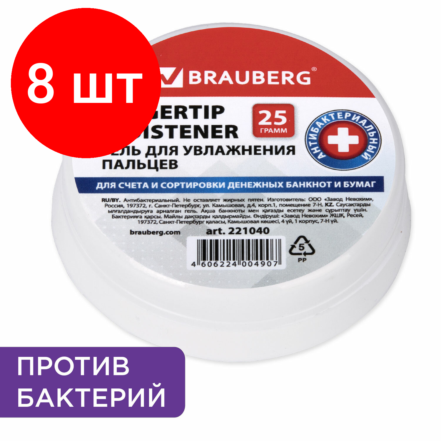 10 цен на Комплект 8 шт, Гель для увлажнения пальцев антибактериальный BRAUBERG, 25 г, 221040