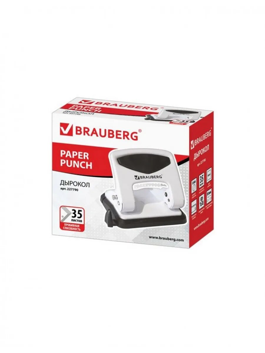 Дырокол BRAUBERG PN-150M 35 листов, 1 шт., белый