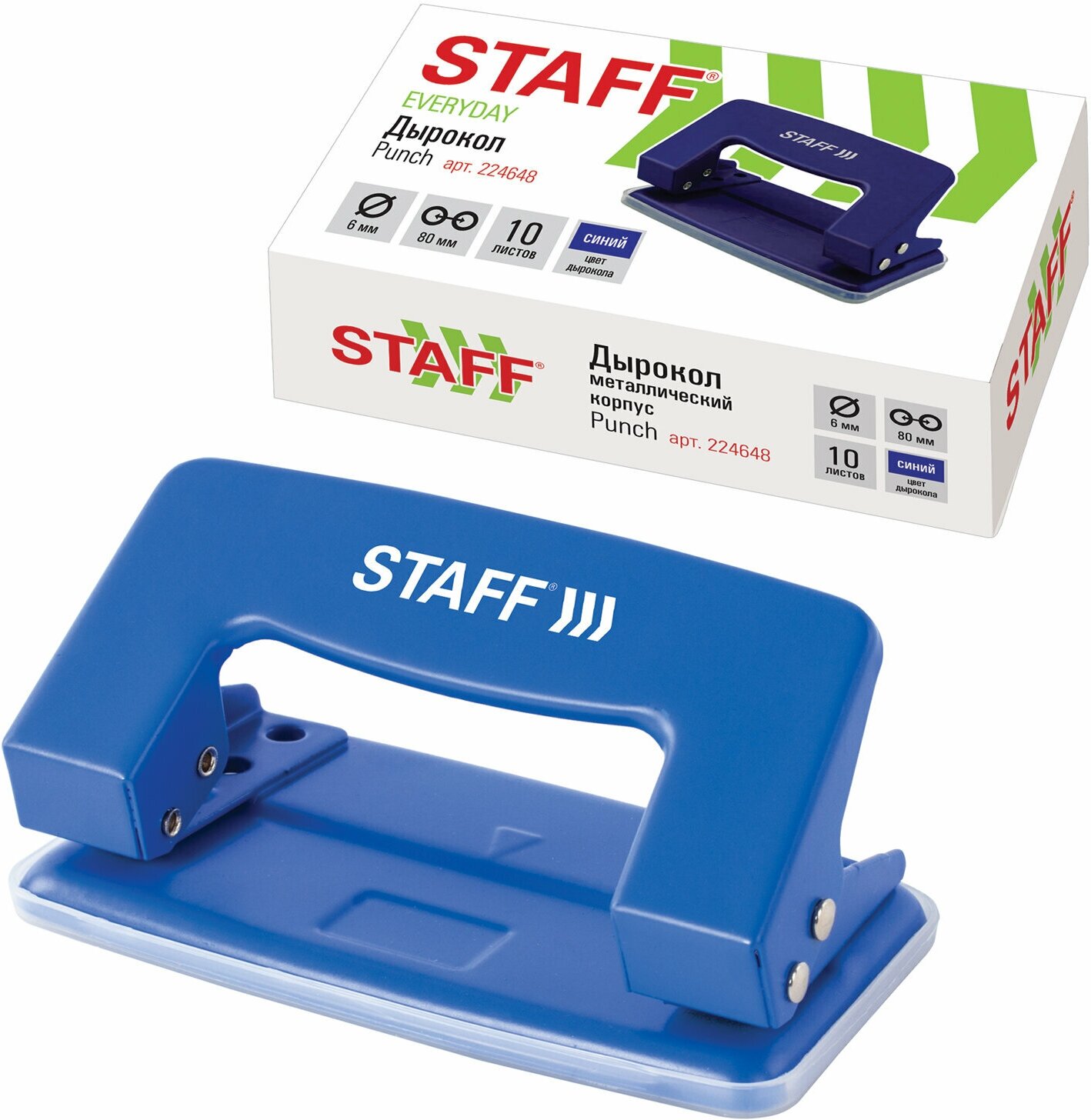Дырокол металлический STAFF «EVERYDAY», до 10 листов, без линейки, синий, 224648