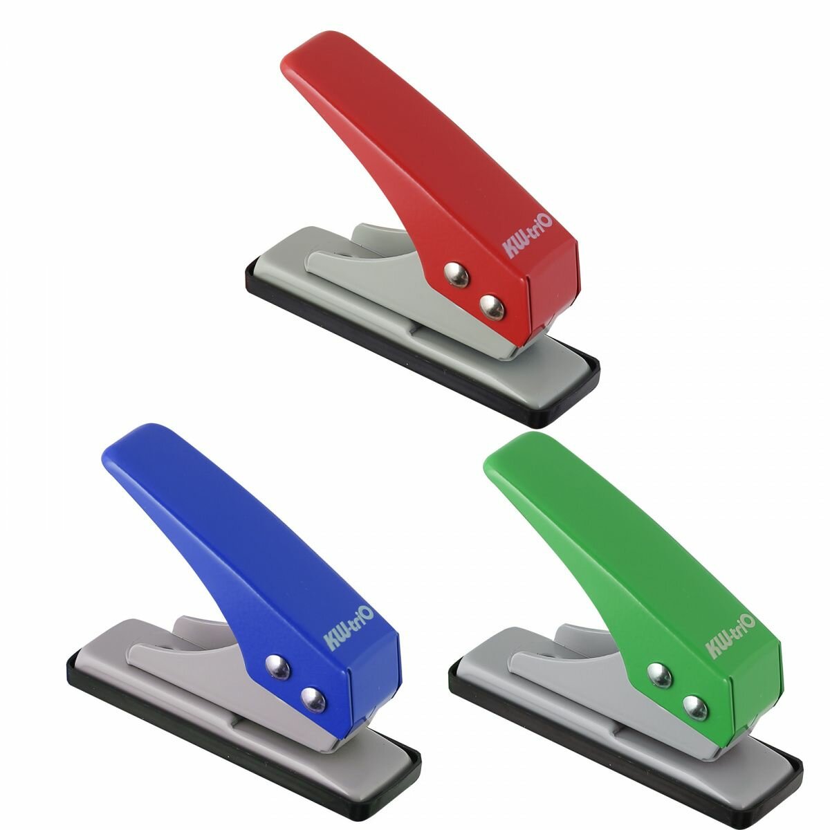 10 цен на Дырокол на 1 отверстие KW-trio, до 12 листов, (красный, синий, зеленый), -921
