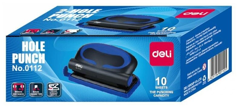 Дырокол Deli Essential Plus E0112 максимум: 10 листов металл ассорти отверстия: 2 с линейкой