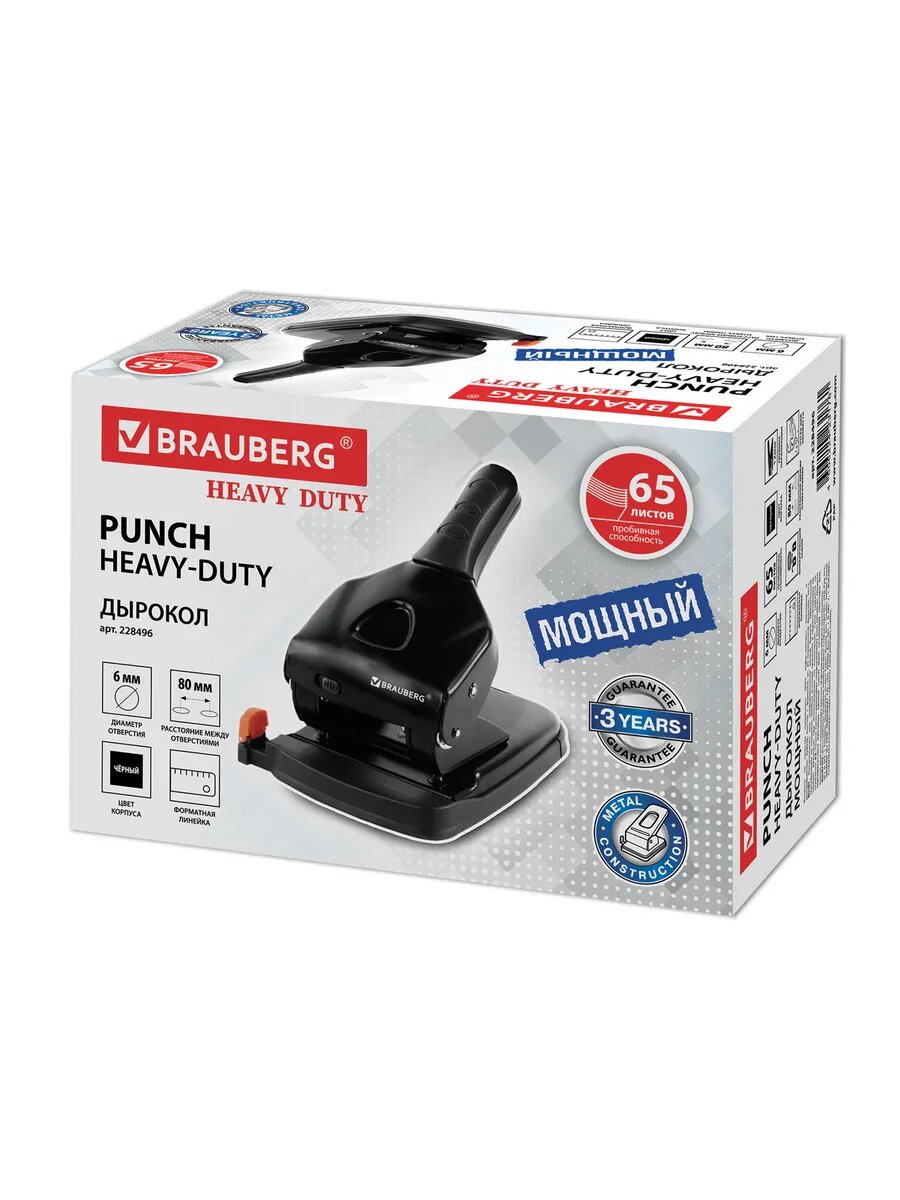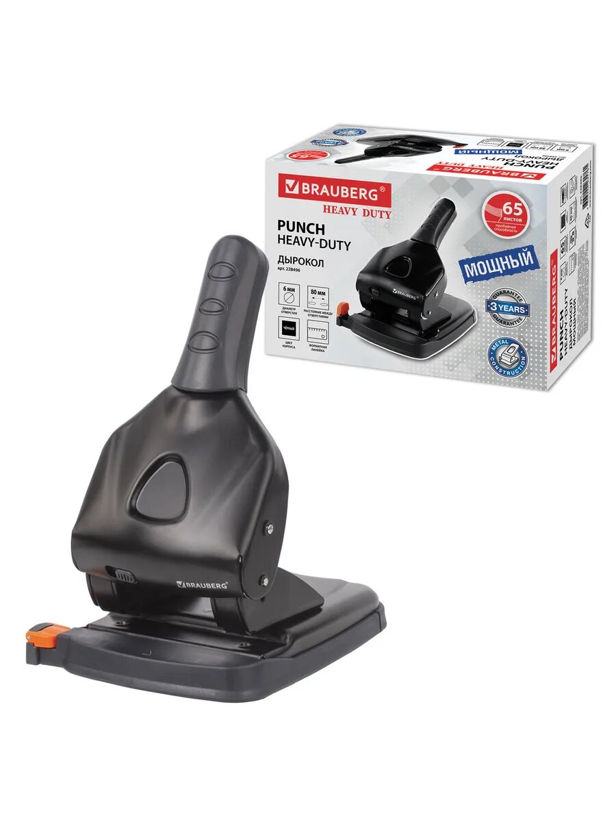Квант продажи 1 ед. Дырокол металлический мощный BRAUBERG «Heavy duty» до 65 листов, эргономичный, черный