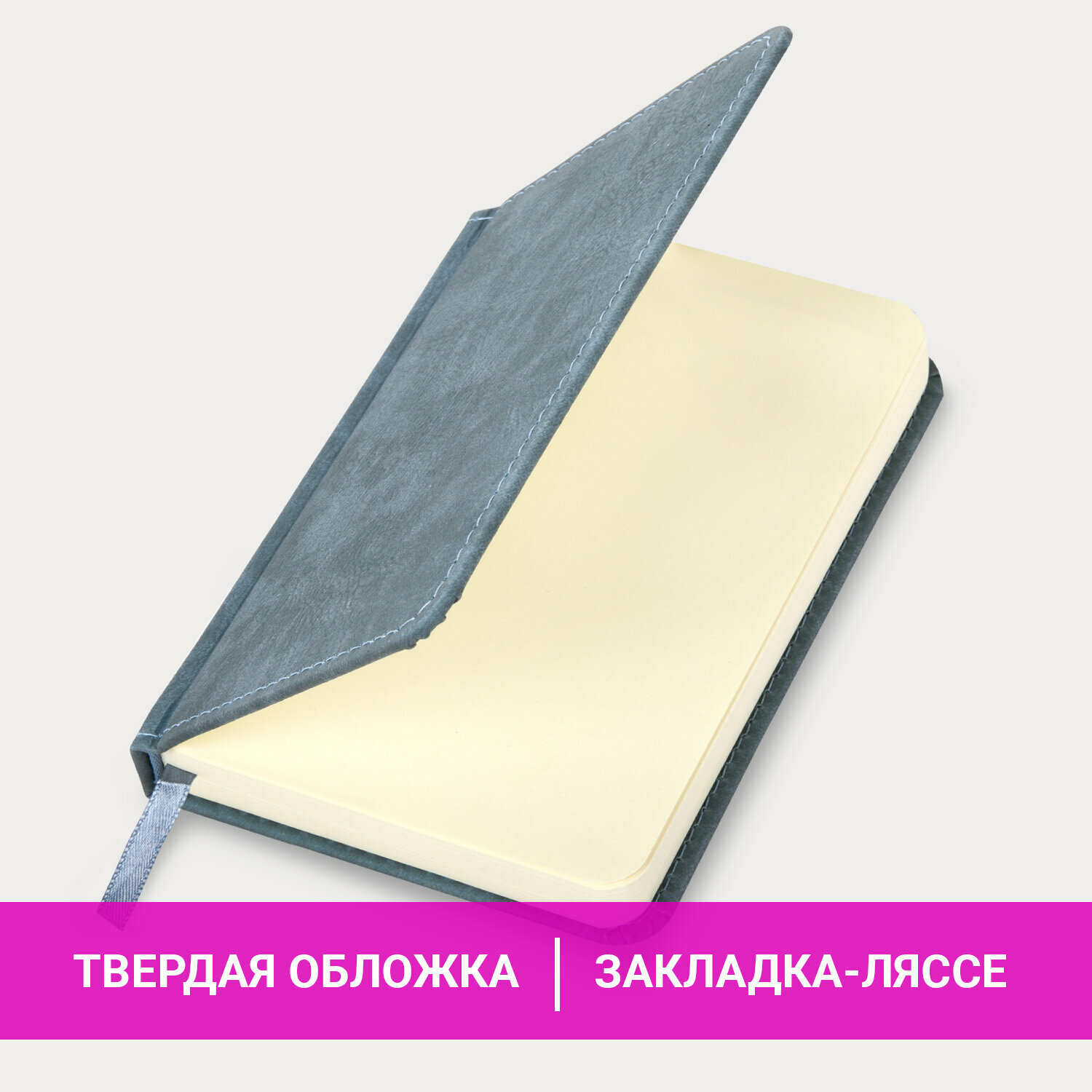 113369, Ежедневник недатированный малый 100х150 мм А6 BRAUBERG Status, под кожу, 160 л., серо-голубой, 113369 400 ₽
