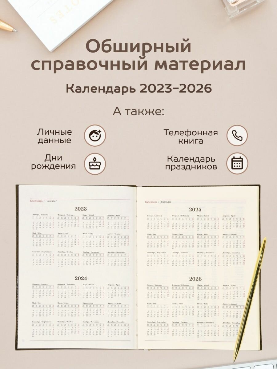 Ежедневник недатированный, А5, 80 л, LOREX ELEGANCE STYLISH COLLECTION, твердая обложка, бежевый, с ручкой в кармашке информация: