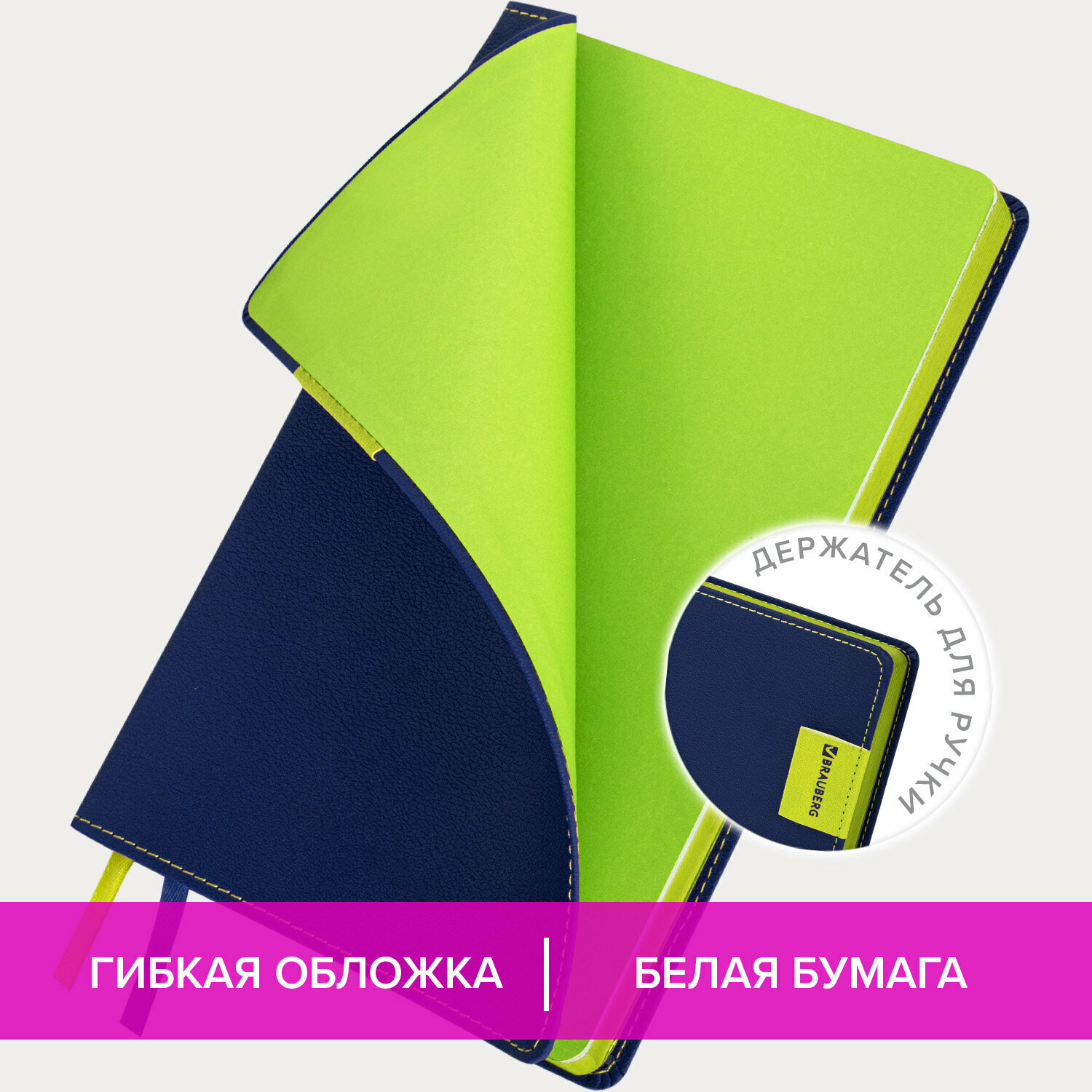 | Особенности | перфорация уголков / справочная информация / ляссе / держатель для ручки / прошивка по периметру обложки / цветной обрез / закругленные углы |