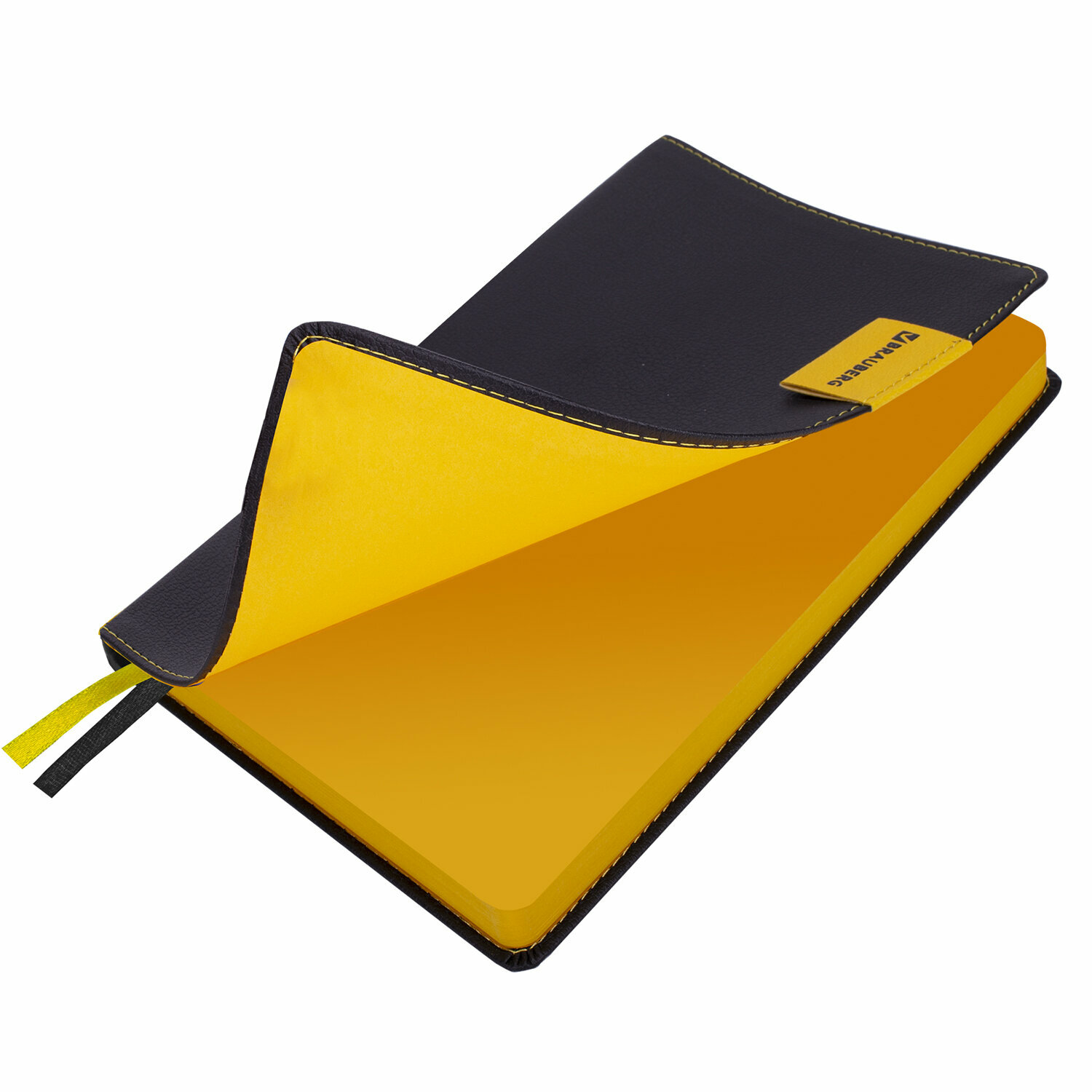 Ежедневник-планер (планинг) / записная книжка / блокнот недатированный А5 (138х213 мм), Brauberg Aim, под кожу, 136 листов, желтый, 113418
