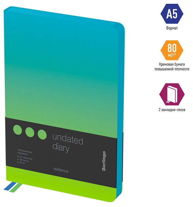 Ежедневник недатированный A5 Berlingo Radiance (136 листов) обложка кожзам, голубой/зеленый градиент (UD0_93503)