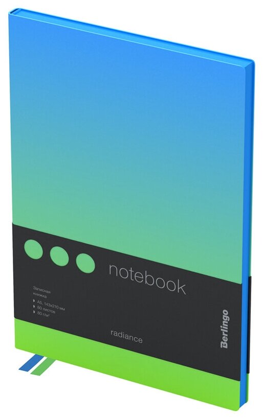 Записная книжка А5 Berlingo "Radiance", 80 листов, клетка, кожзам, черный срез, голубой/зеленый градиент (NB0_93503)