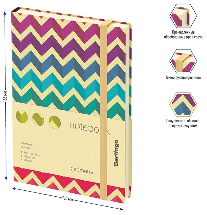 Записная книжка А6 Berlingo "Geometry", 80 листов, с рисунком (NB0_92602) 873 ₽