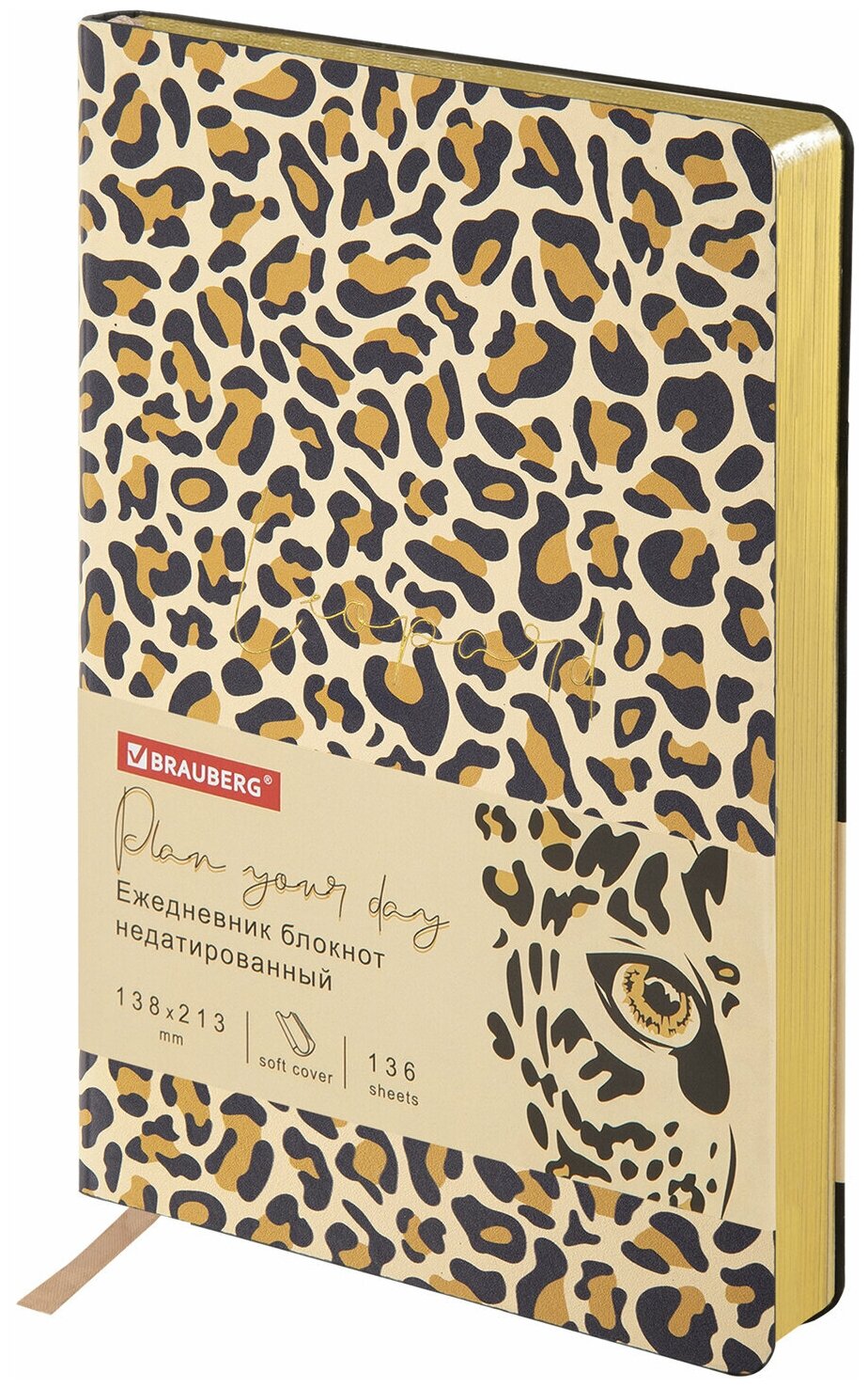 Ежедневник недатированный А5 (138х213 мм), BRAUBERG VISTA, под кожу, гибкий, 136 л., "Leopard", 112038 В комплекте: 1шт.