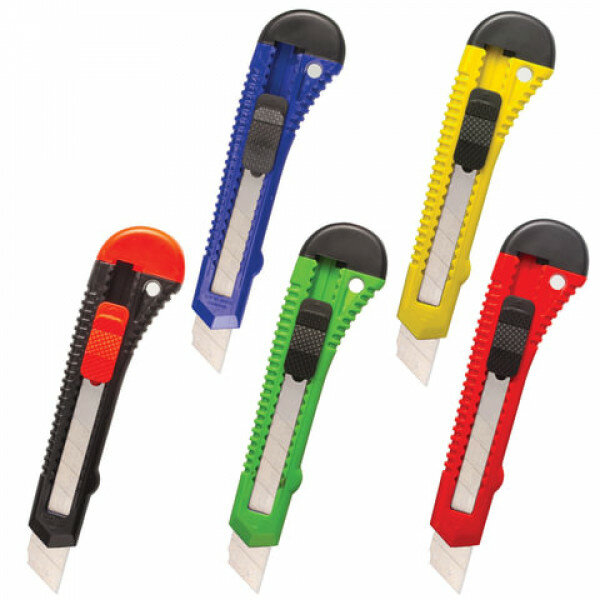 Нож канцелярский 18 мм STAFF "Basic" фиксатор, цвет корпуса ассорти, упаковка с европодвесом, 230485 (цена за 1 ед.товара)