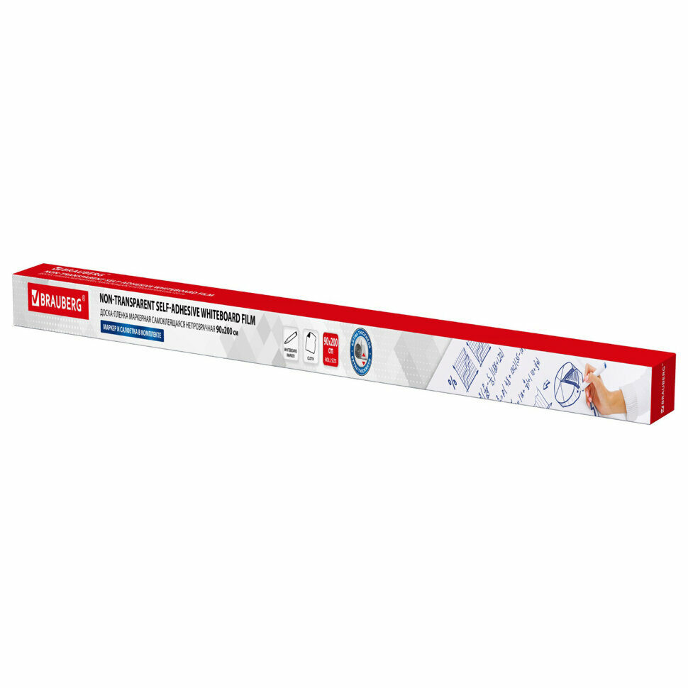 Доска-пленка Brauberg, маркерная, самоклеящаяся, в рулоне, белая, 90х200 см, маркер и салфетка