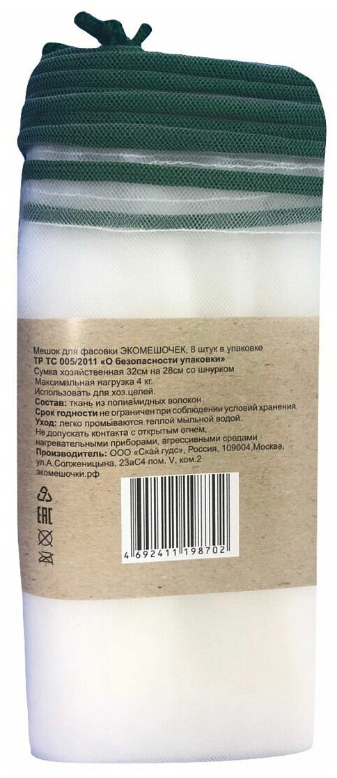 Экомешочки многоразовые для фруктов и овощей, 8 шт. информация: