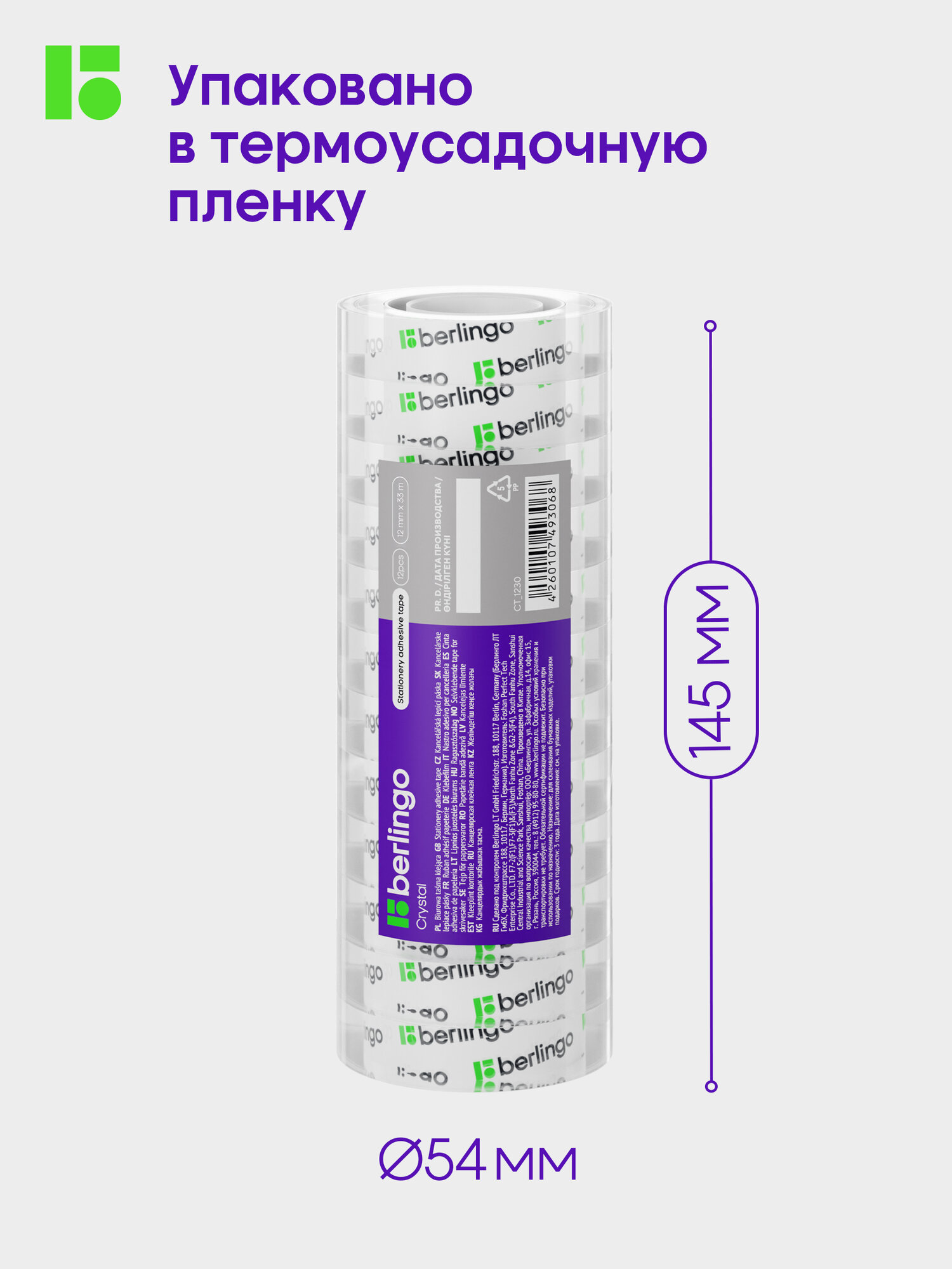 Клейкая лента 12мм*33м, Berlingo, кристально-прозрачная, 12 штук в упаковке информация: