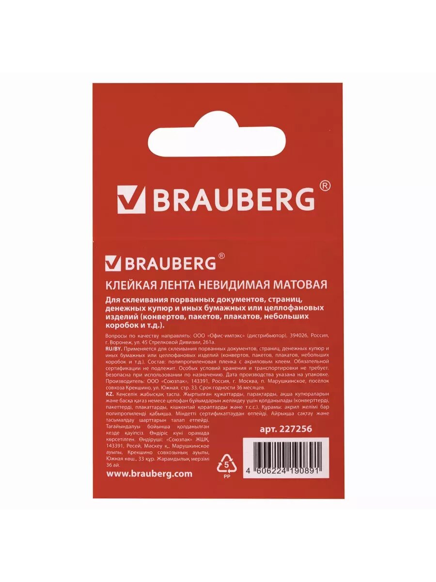 Клейкая лента Brauberg 12 ммх33 м, Невидимая, матовая (227256)
