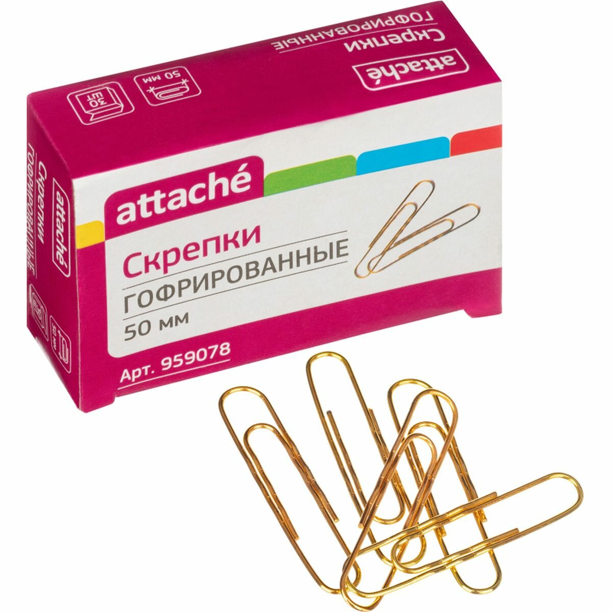 Скрепки Attache (50мм, металлические, гофрированные, золотистые) 30шт, 300 уп. информация: