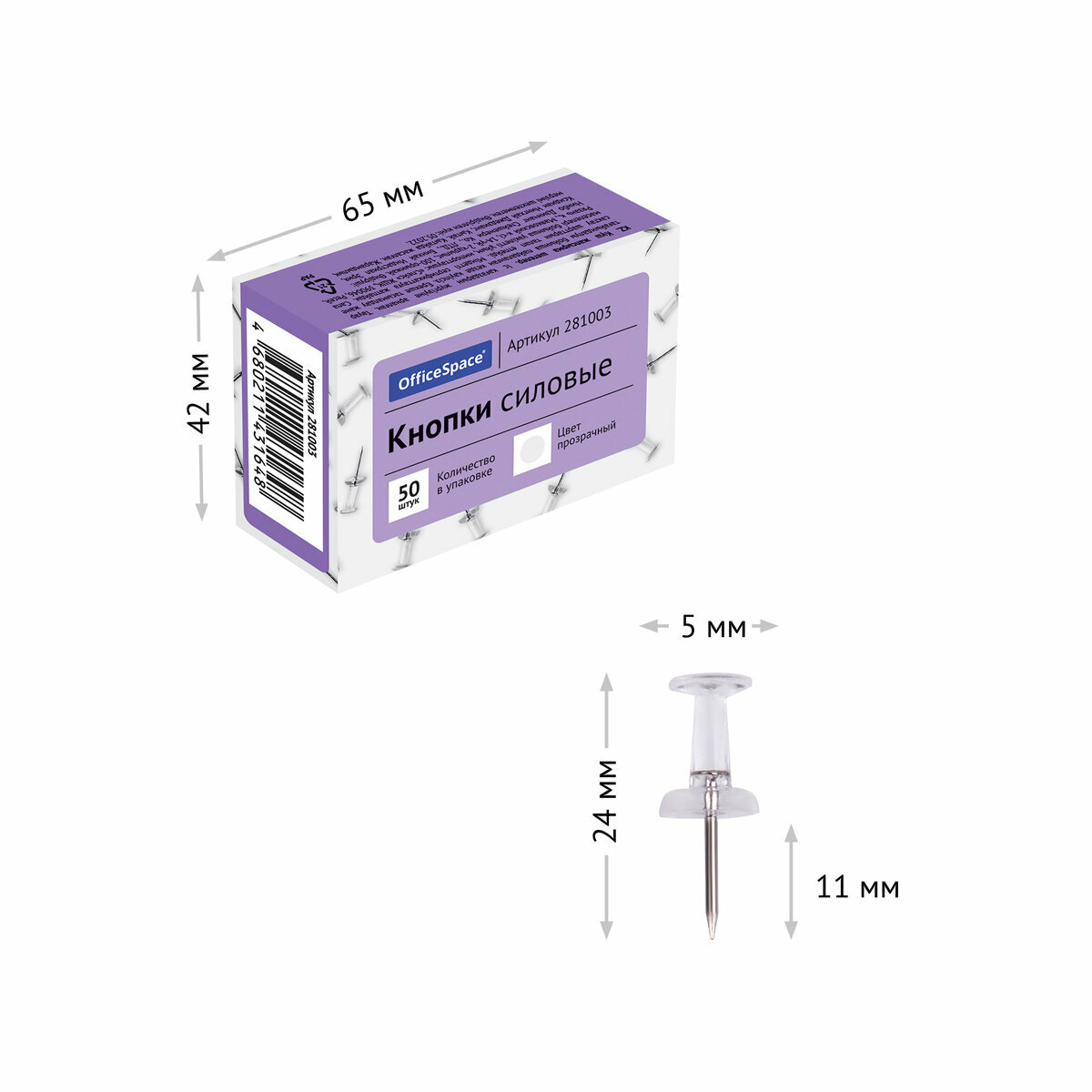 Кнопки силовые OfficeSpace, 50шт, карт. упак, прозрачные шляпки, 10 штук информация:
