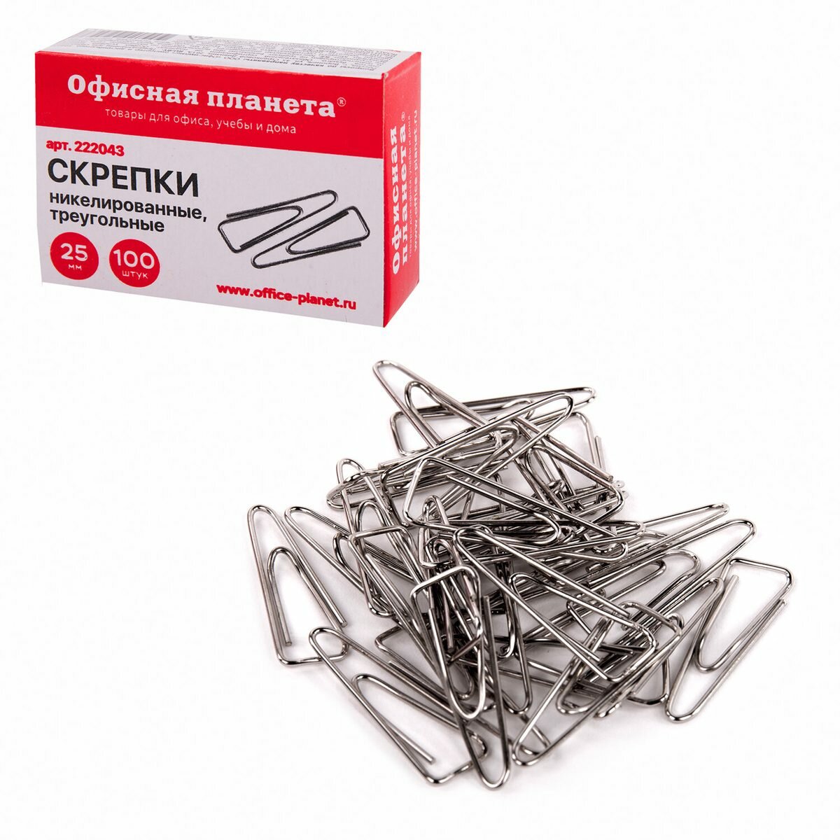 Скрепки офисная планета, 25 мм, никелированные, треугольные, 100 шт., в картонной коробке, 222043