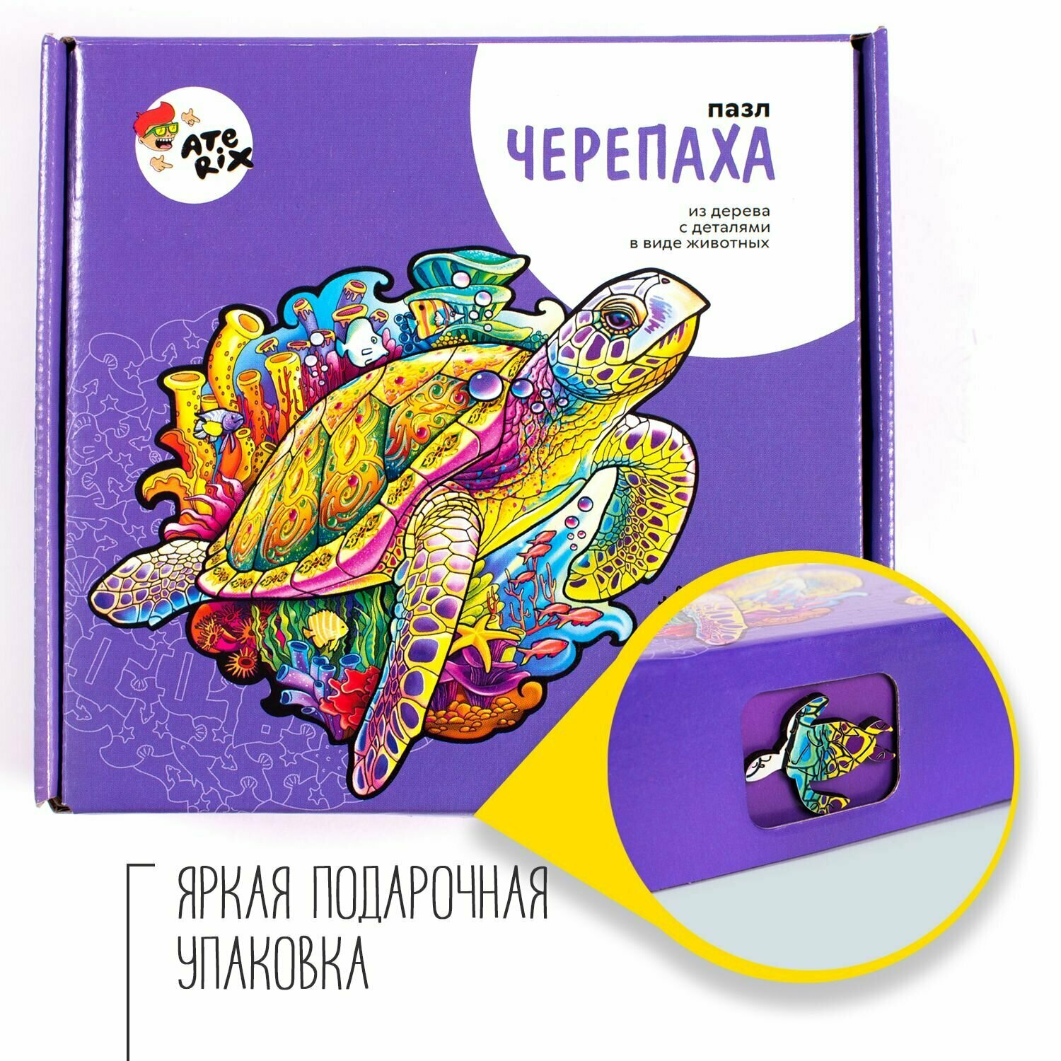 Развивающий деревянный пазл Aterix в картонной коробке 'Черепаха' М
