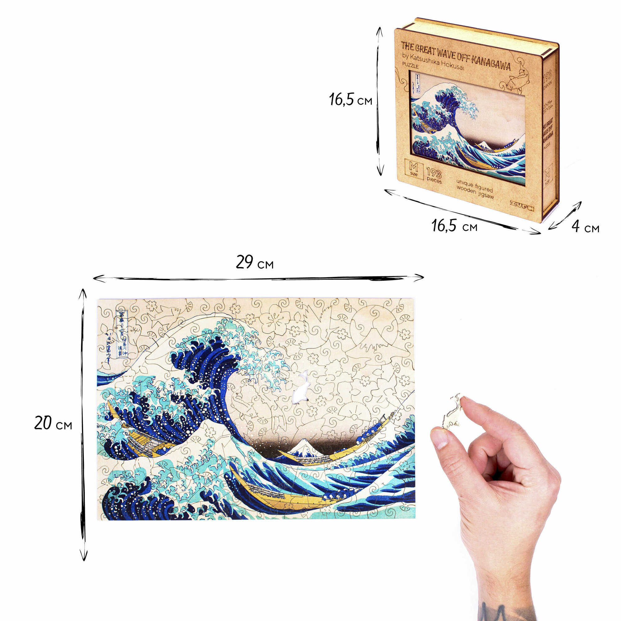 Деревянные пазлы для взрослых и детей Zufa Большая волна в Канагаве М- 193 деталей, 29х22см. информация: