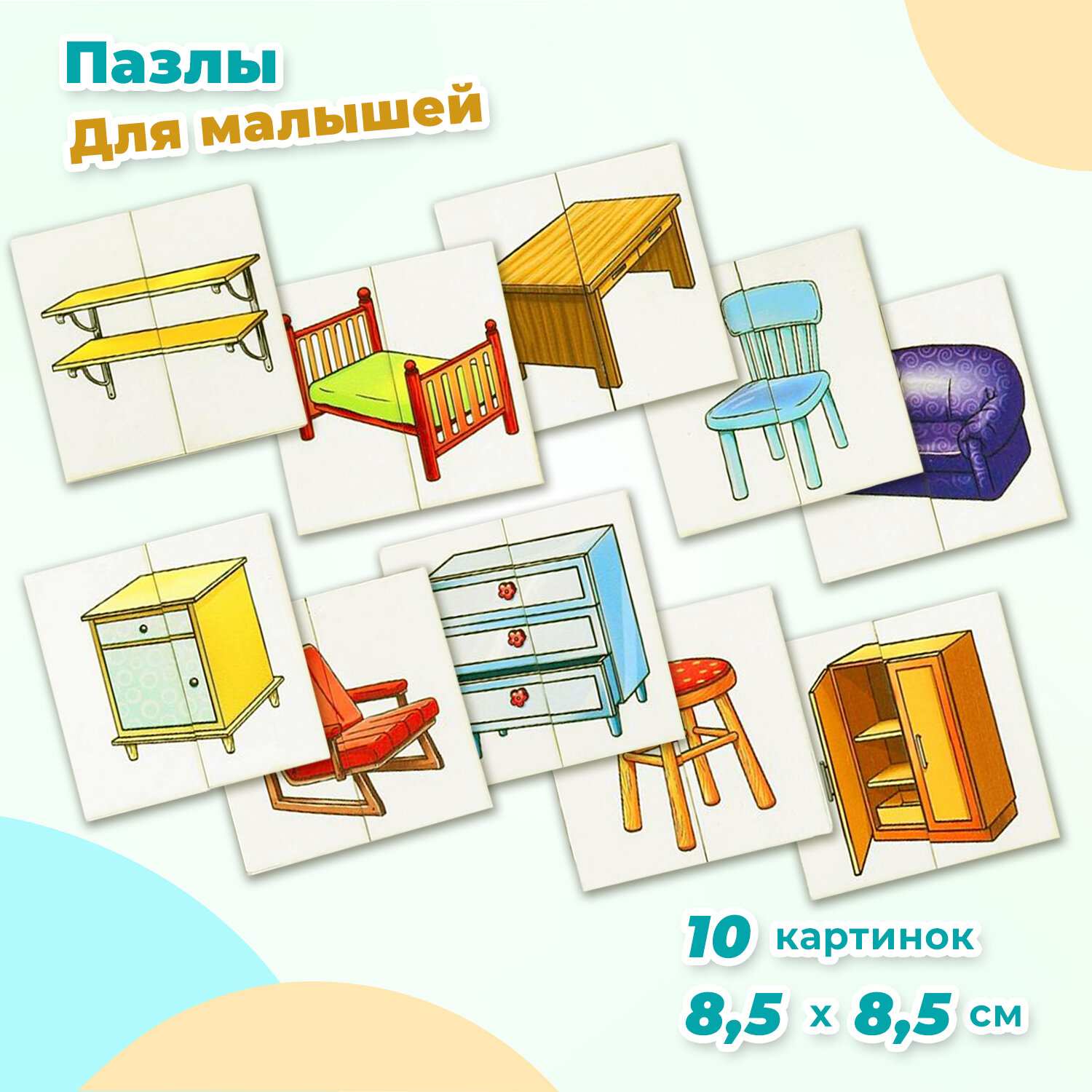 Деревянные разрезные картинки-половинки Smile Decor "Мебель", развивающий пазл для малышей информация: