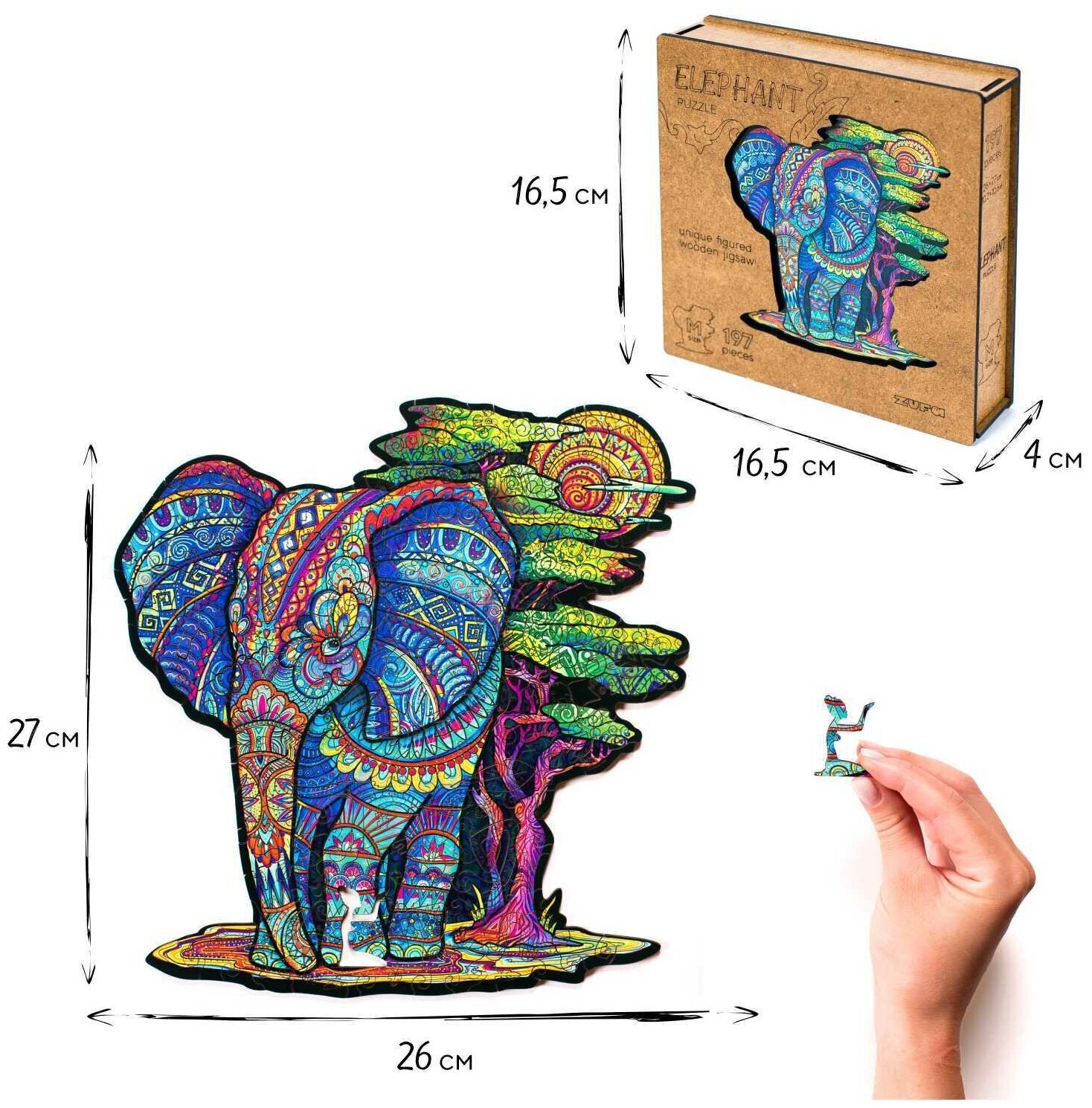 Деревянные пазлы для взрослых и детей Zufa с 3D фигурками , Слон - 197 деталей, 26х27см. информация: