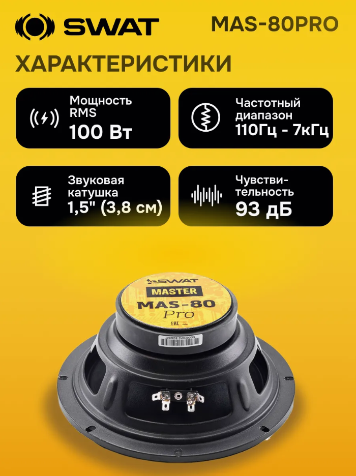 Отзывы на Акустика SWAT MAS-80 PRO Master, эстрадная, 8 дюймов, номинальная мощность 100 Ватт, чёрная