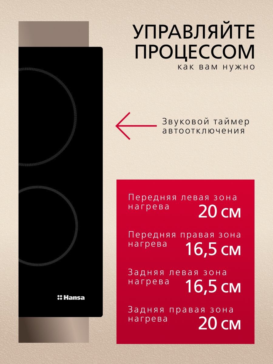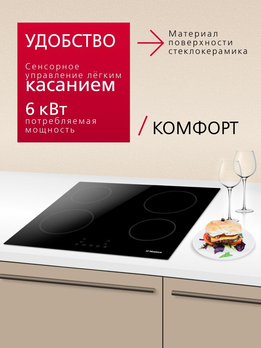 Отзывы на Электрическая варочная панель Hansa BHC633005, стеклокерамическая поверхность, блокировка от детей, таймер, автоотключение, индикация остаточного тепла, черная