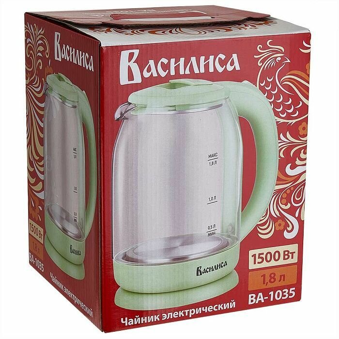 Чайник Василиса ВА-1035 электрический, термостойкое стекло, 1.8 л, зеленый информация: