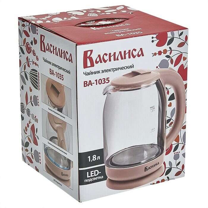 Чайник Василиса ВА-1035 электрический, термостойкое стекло, 1.8 л, бежевый информация: