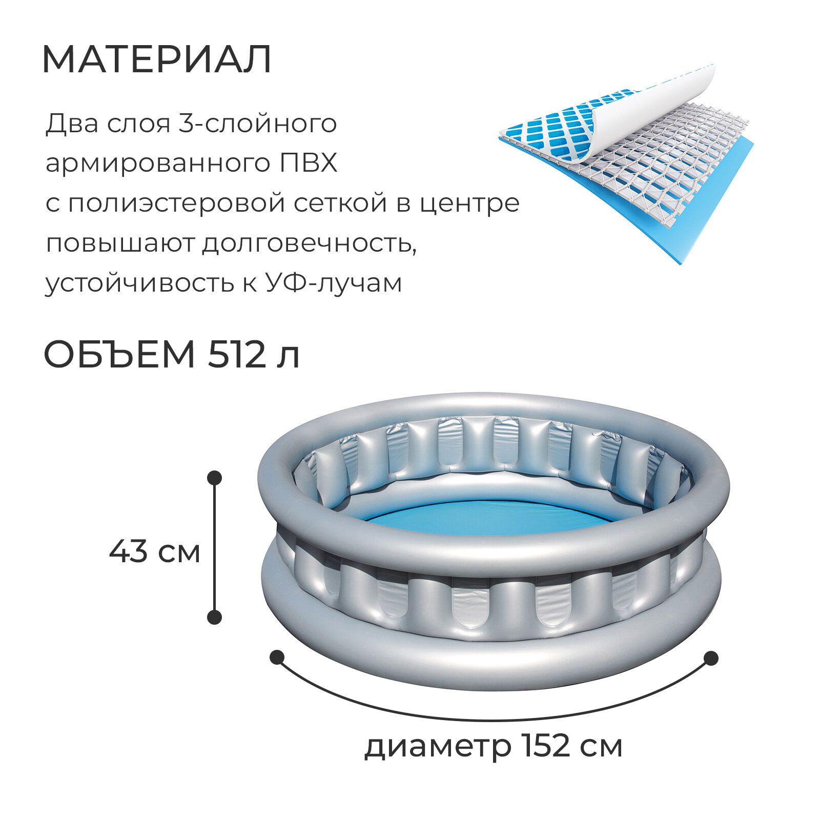 Надувной бассейн Bestway на 512 л, "Космический корабль" 152х43 см, серый, для детей 3+ информация: