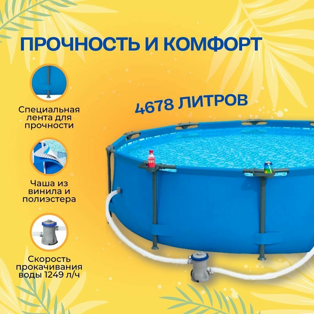 56416 Каркасный бассейн круглый BestWay, 366х76см, фильтр-насос 1249 л/ч