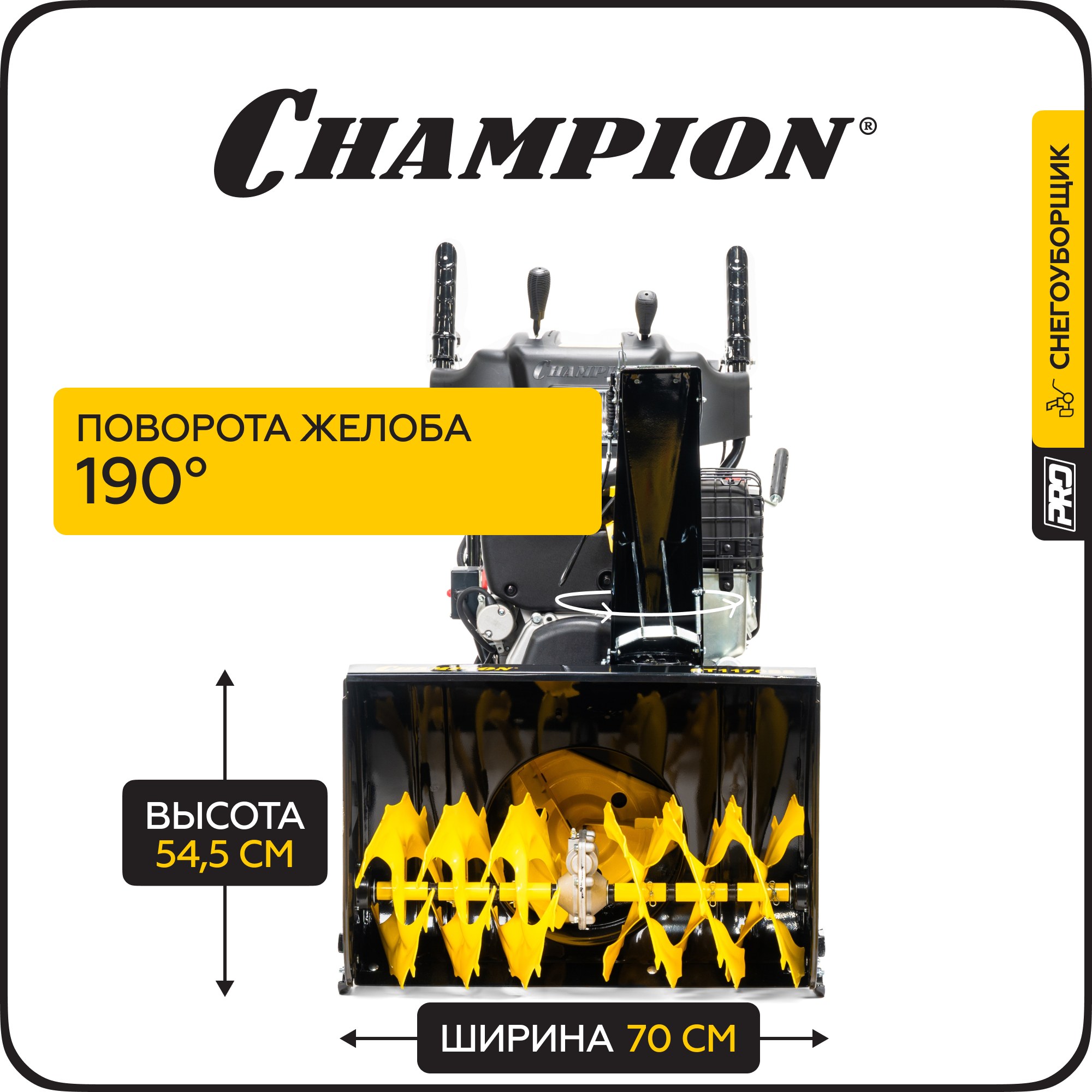 Снегоуборщик CHAMPION ST1170BS (13,5лсB&S2100 70см6F/2Rколеса5.6л121кг эл. стартер, фара, обогр) информация: