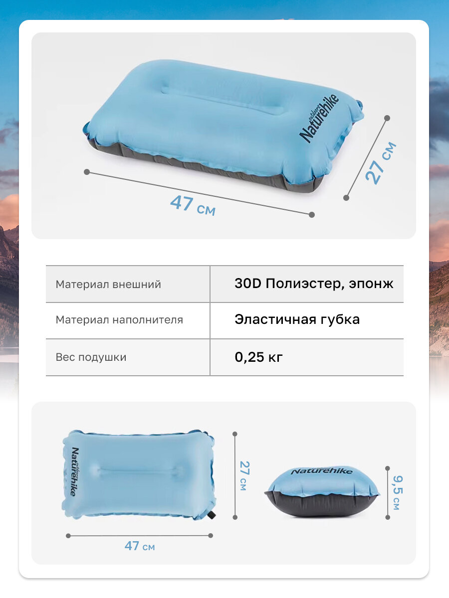 Отзывы на Подушка Naturehike, самонадувная, голубая, 46 см x 27 см x 9.5 см