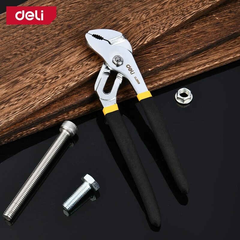 10 цен на Переставные клещи 200мм Deli DL2608 диапазон раскрытия 5-35мм, прорезиненная рукоять