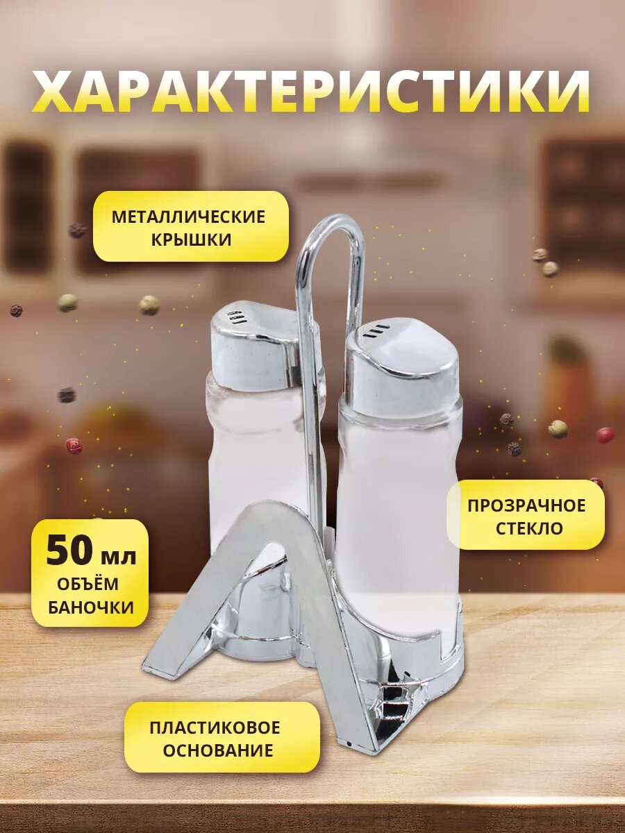 Отзывы на Набор для специй на подставке: солонка и перечница с салфетницей 2в1, цвет серебристый