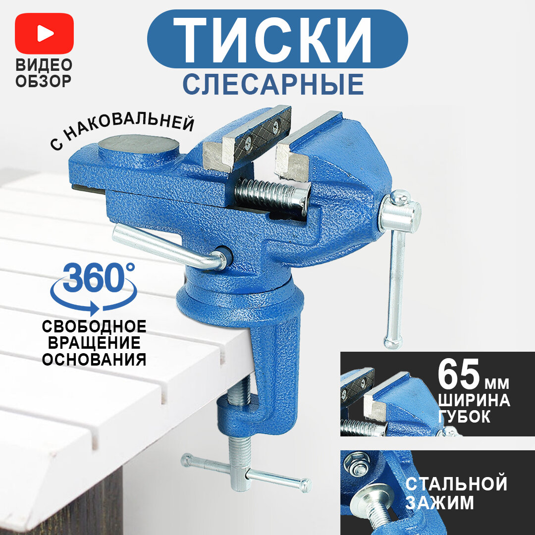 Тиски слесарные настольные, поворотные, с наковальней, ширина губок 65 мм информация: