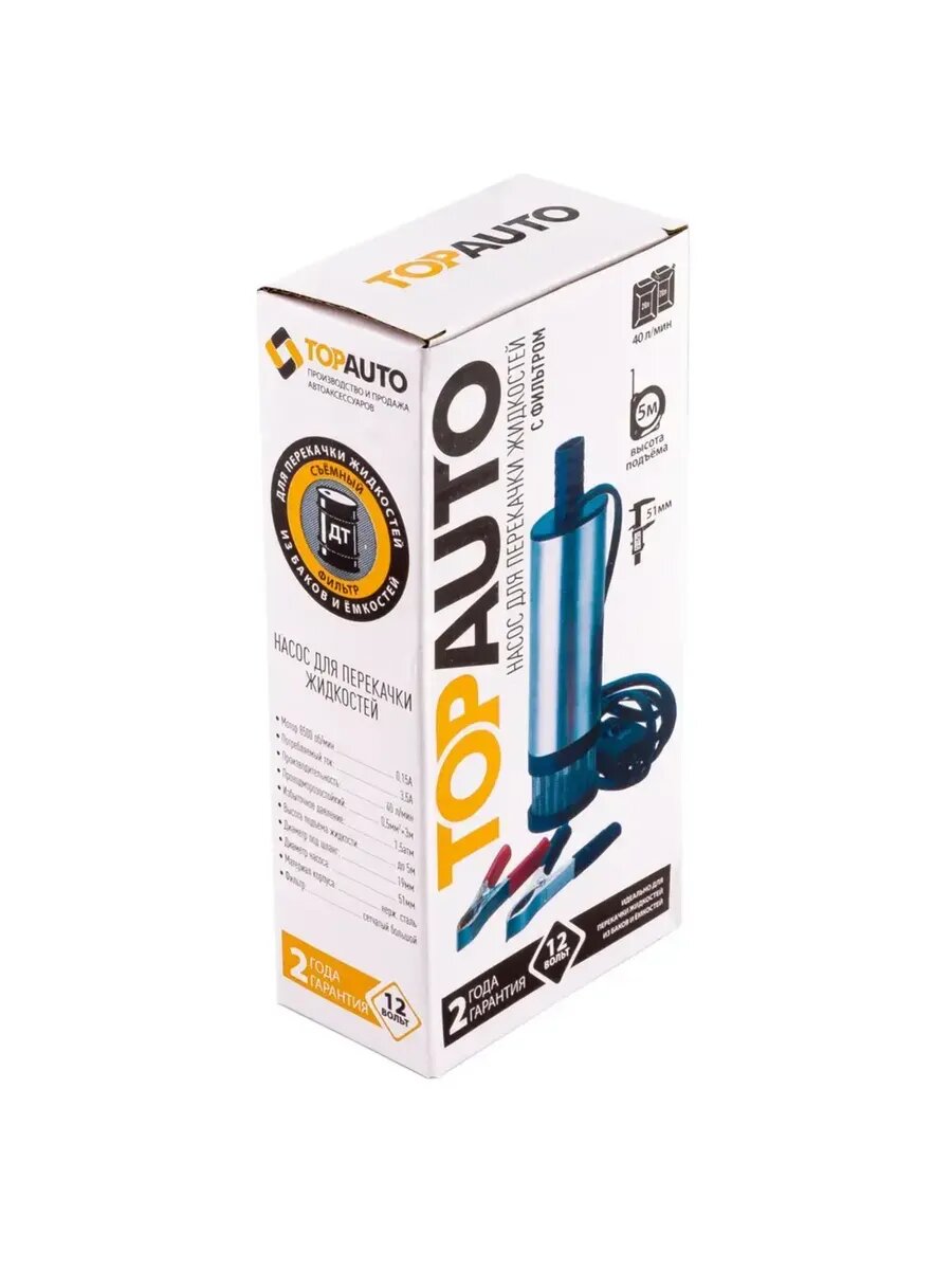 Насос для перекачки топлива,TOP AUTO, для ГСМ, для дизеля, 12В, ТА-51/12, диаметр 51 мм