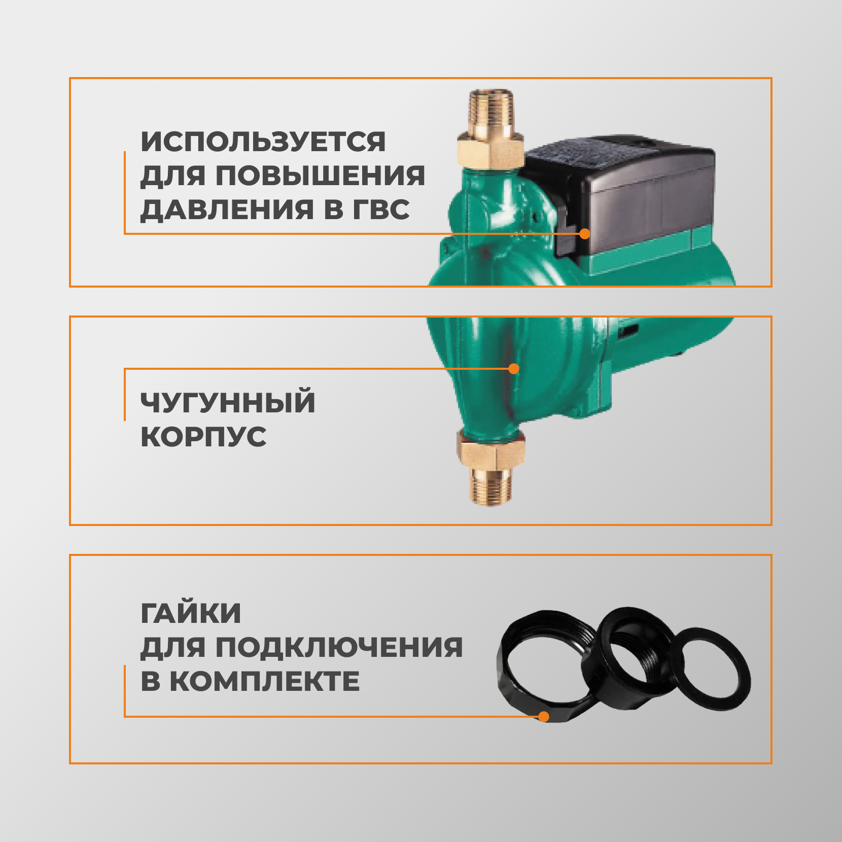 | Подробная комплектация | одноступенчатый автоматический насос, монтажный пакет (2 набора муфт, штуцеров, уплотнений для трубопровода), инструкция по монтажу и эксплуатации |