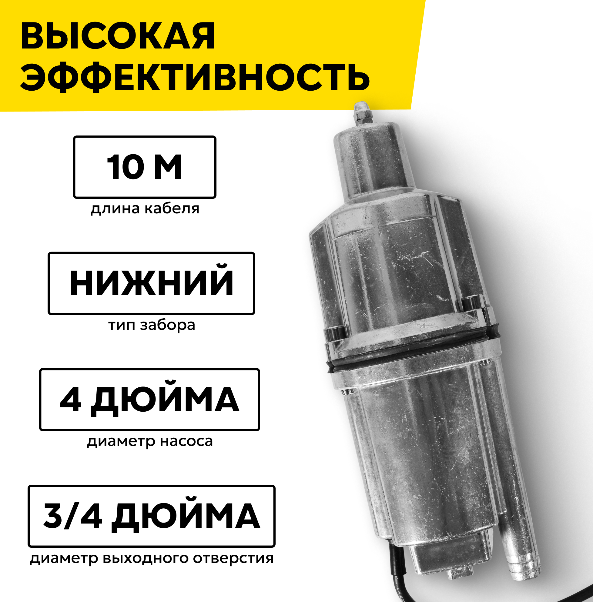 Насос вибрационный вихрь ВН-10Н с нижним забором воды (18 л/мин, кабель 10 м, напор 72м)
