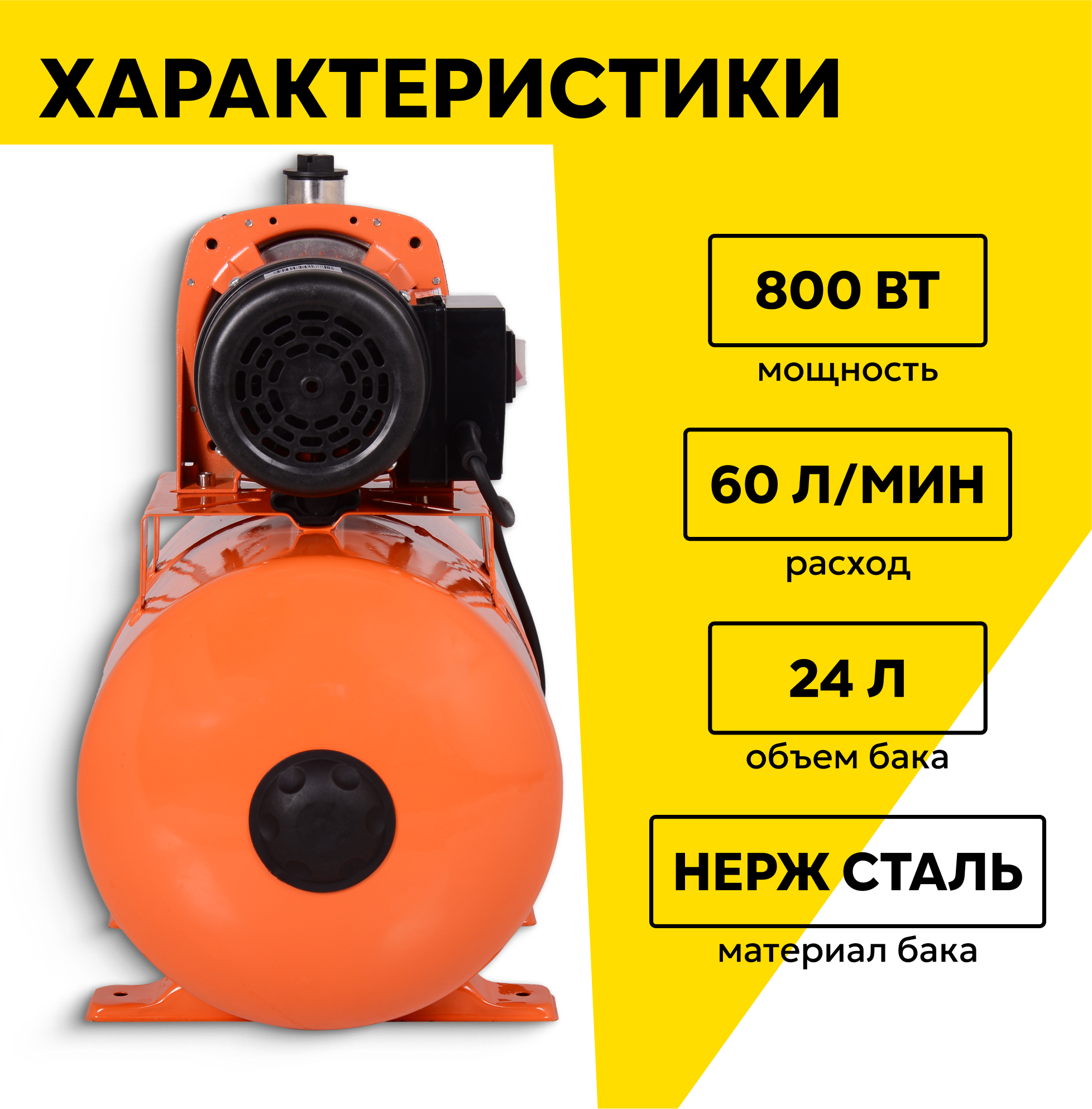 Насосная станция / Автономная станция водоснабжения -800/24Н Вихрь (800 Вт, напор – 40 м, 60 л/мин, гидроаккумулятор – 24 л, глубина всасывания – 9 м, G1”, корпус насоса – нерж. Сталь) 16 723 ₽