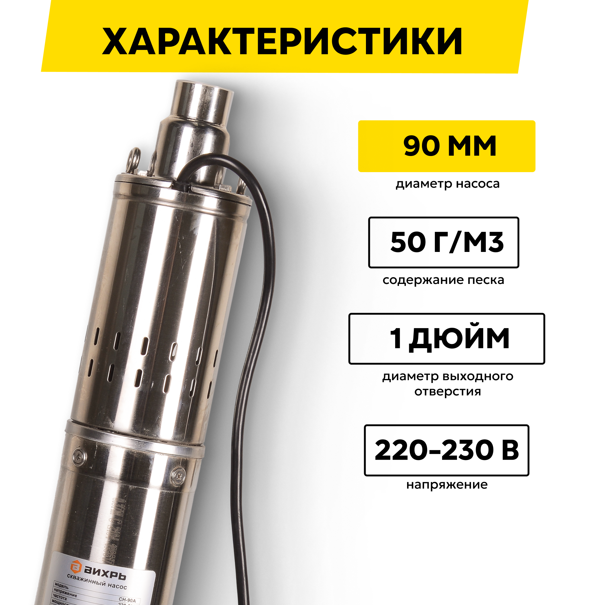 10 цен на Скважинный насос Вихрь СН-90А, 550 Вт, высота подъема – 90 м, 25 л/мин, 1”