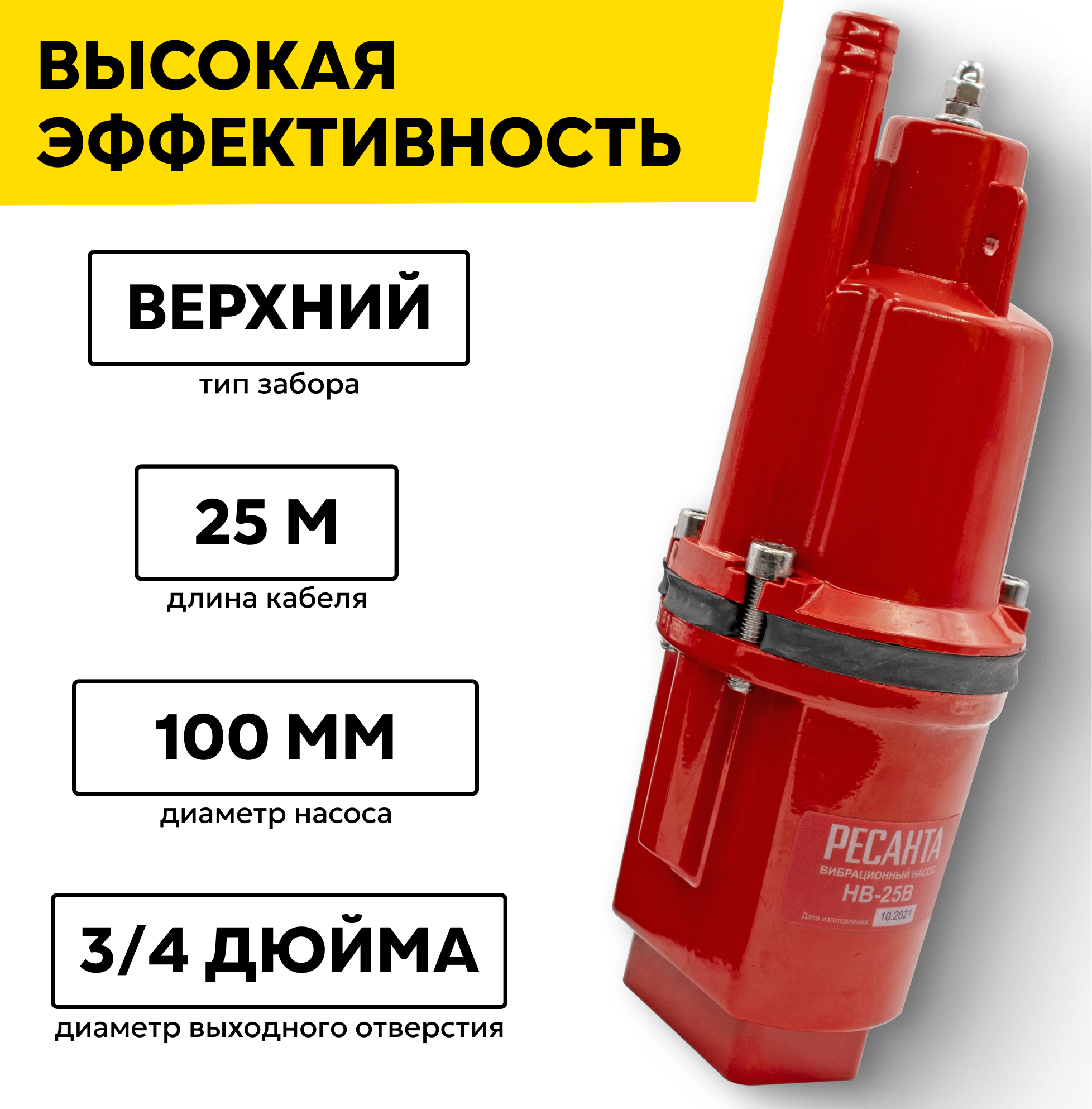 Отзывы на Вибрационный насос Ресанта НВ-25В, высота подъема 75м, верхний забор воды, кабель 25м
