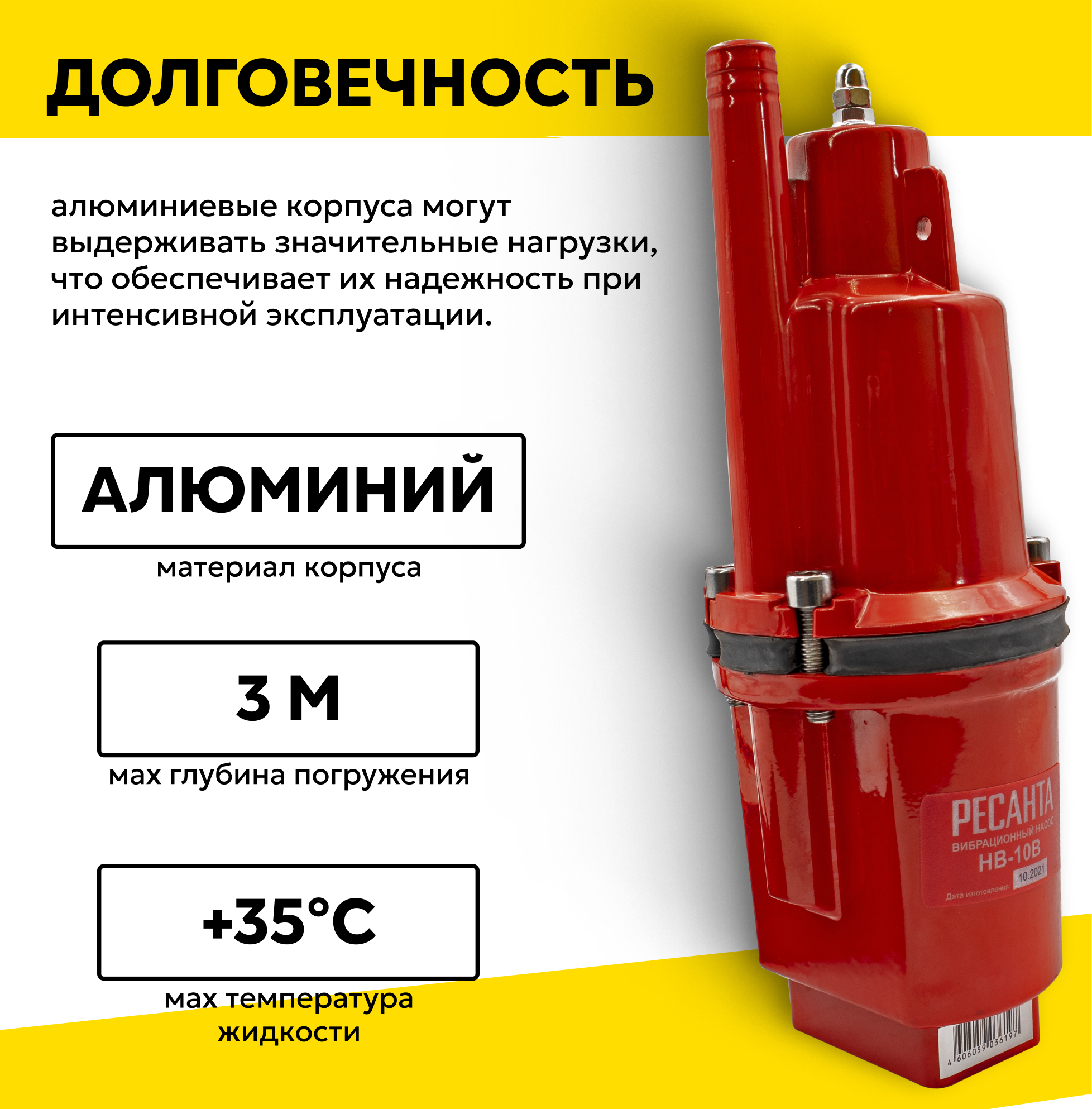 10 цен на Вибрационный насос Ресанта НВ-10В, высота подъема 75м, верхний забор воды, кабель 10м