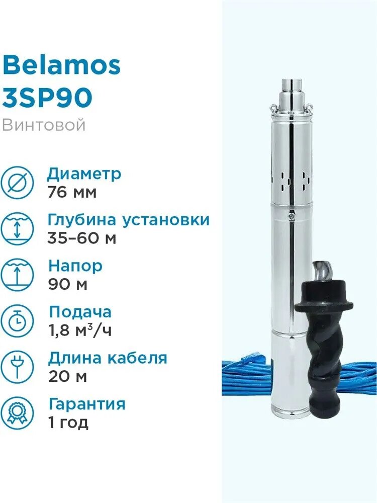 Погружной винтовой насос Belamos 3SP90/1.8 (диаметр 75мм, кабель 20м) 5 773 ₽
