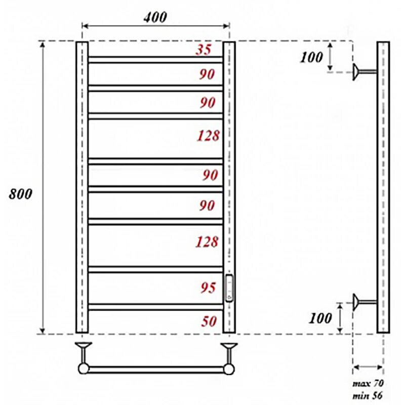 Полотенцесушитель электрический POINT П8 400x800 диммер справа, белый информация: