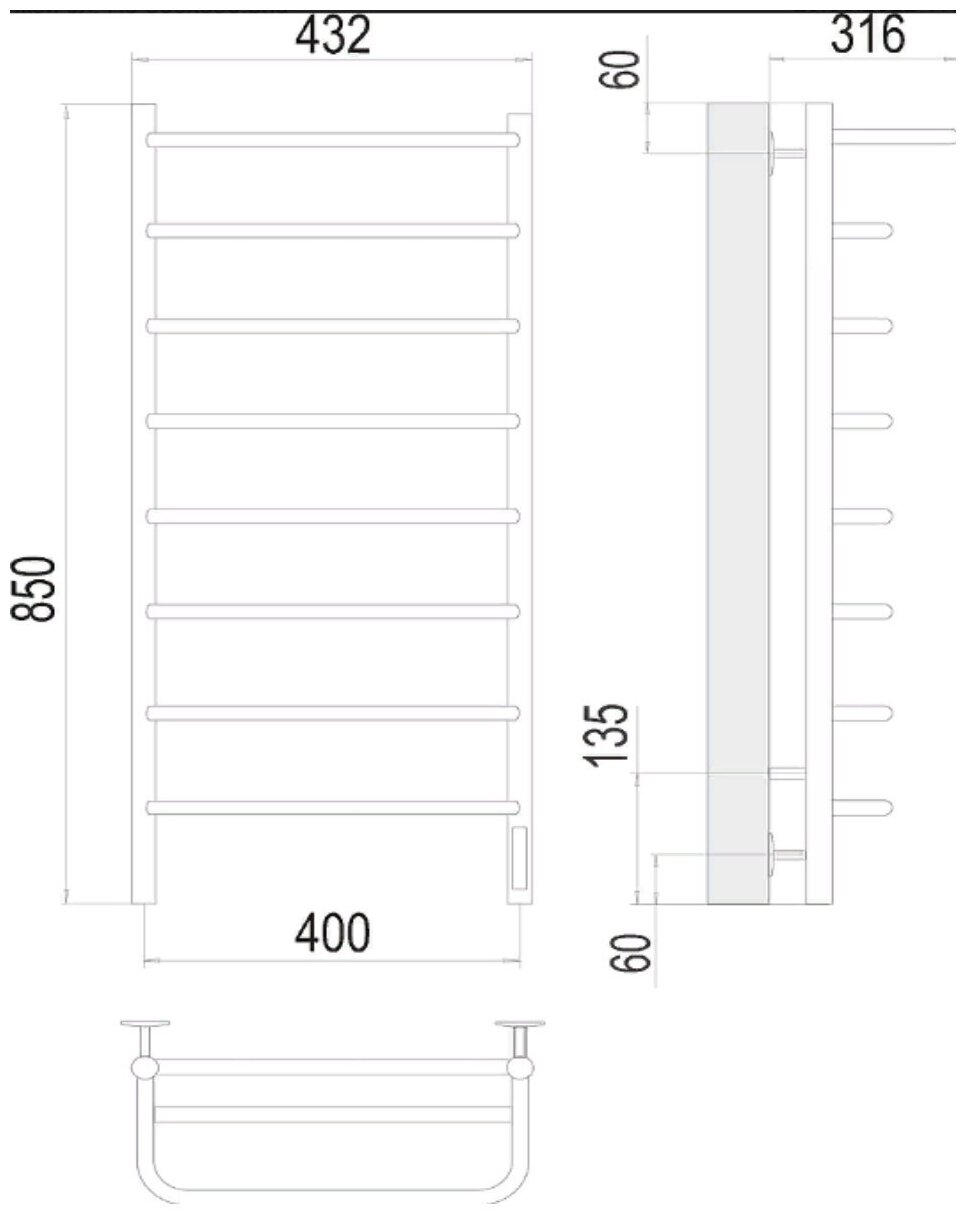 Полотенцесушитель TERMINUS Полка П8 (ШВ:400х850) электро, нерж. сталь, quick touch, правый информация: