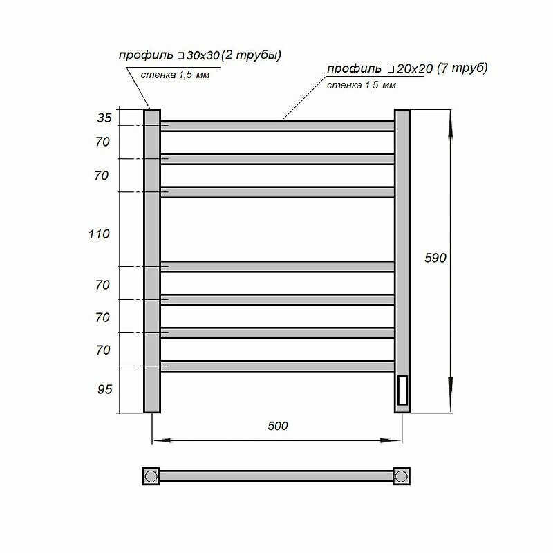Полотенцесушитель электрический POINT П7 500x600, диммер справа, черный информация: