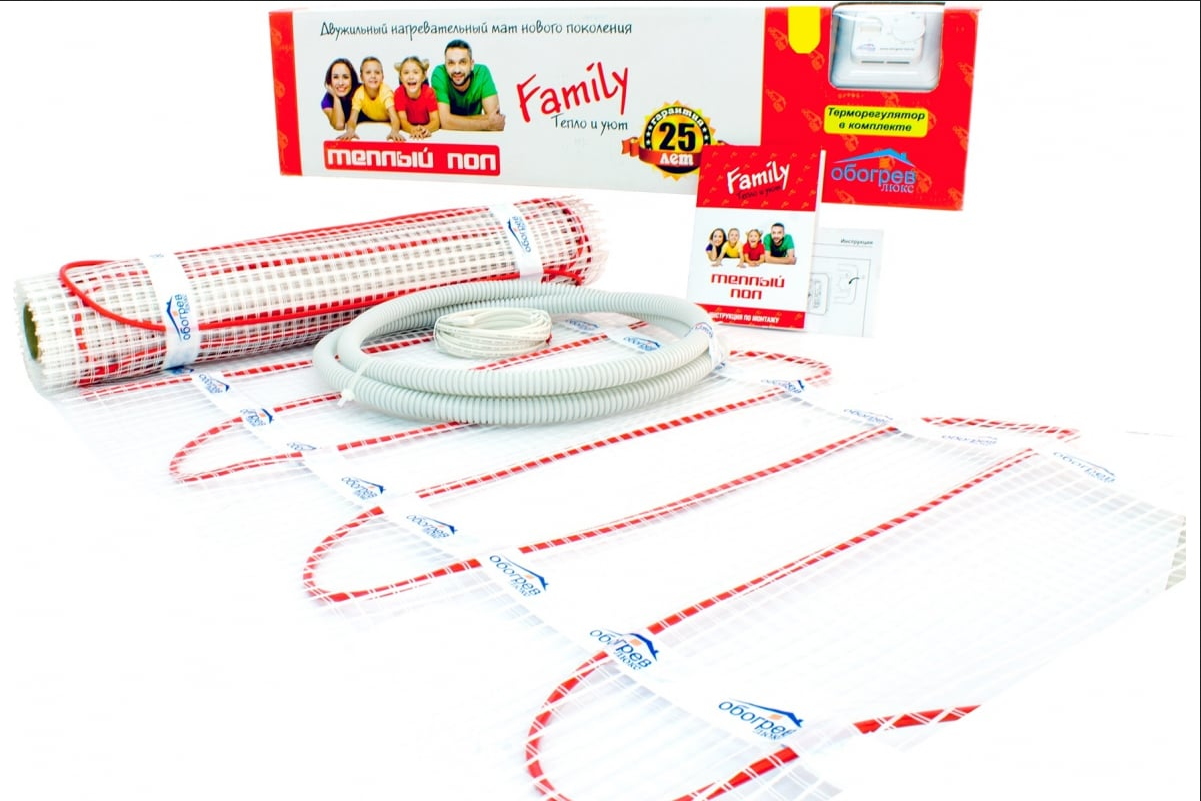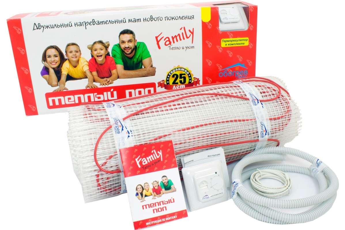 Тёплый пол Обогрев Люкс Family 600 Вт - 4,0 м/кв в комплекте с мех. терморегулятором информация: